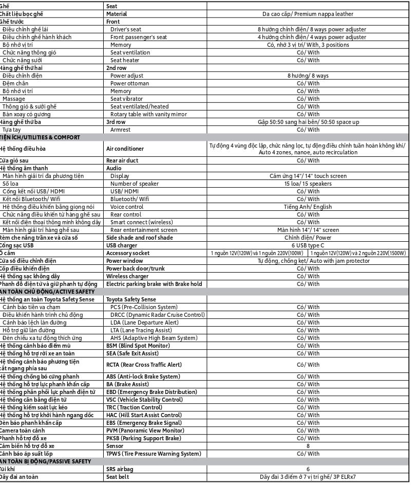 | Alphard HEV: | 4.615.000.000 ₫ |