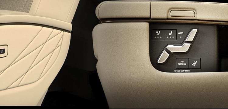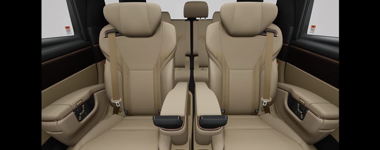 Không gian nội thất sang trọng với các chi tiết được trau chuốt tỉ mỉ tới từng đường nét. Hàng ghế thứ hai được trang bị ghế thương gia với nhiều tiện ích hiện đại như đệm chân Ottoman, chức năng sưởi ghế, thông gió, massage, bàn làm việc gấp gọn tích hợp gương trang điểm, nút bấm điều chỉnh điện 8 hướng, … Bên cạnh đó, cấu trúc ghế và chất liệu đệm ghế giảm rung động mang đến trải nghiệm thoải mái và thư giãn cho hành khách trên mọi cung đường.