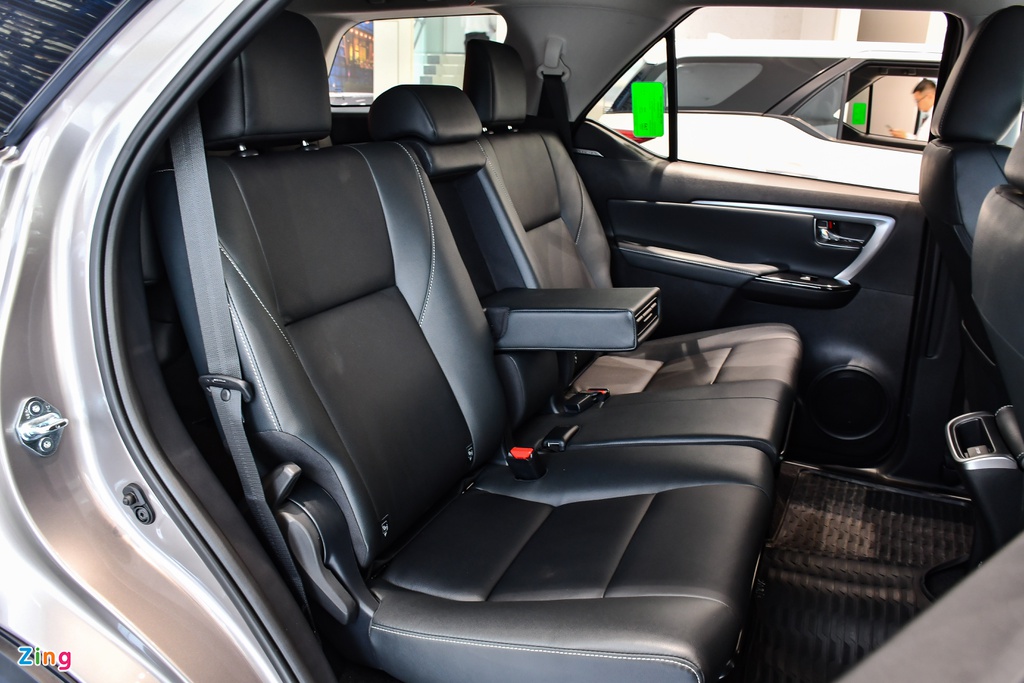 Trục cơ sở của Fortuner vẫn giữ nguyên ở mức 2745 mm, do đó không gian để chân ở các hàng ghế không có sự thay đổi. Chỉ có duy nhất phiên bản tiêu chuẩn 2.4 4×2 MT có ghế ngồi bọc nỉ trong khi các bản còn lại đều có ghế ngồi bọc da, tạo sự êm ái, sang trọng.