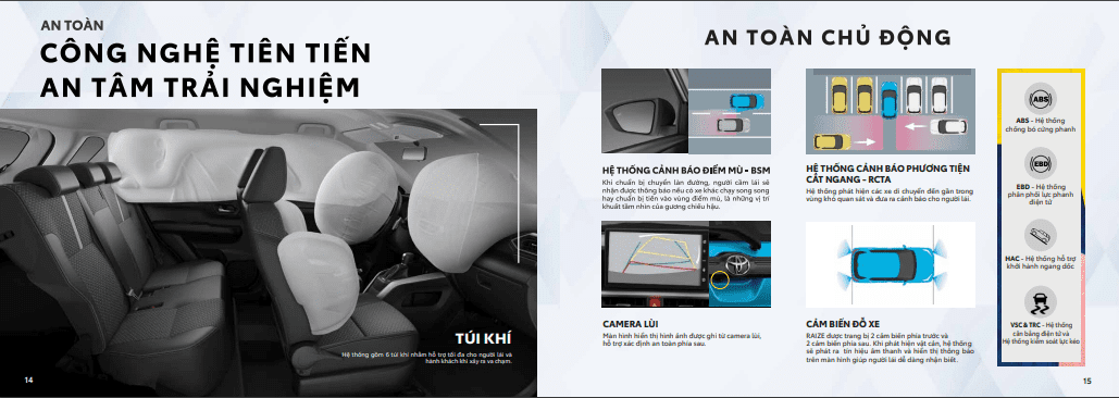 Danh sách an toàn trên Raize gồm có loạt tính năng hiện đại như: