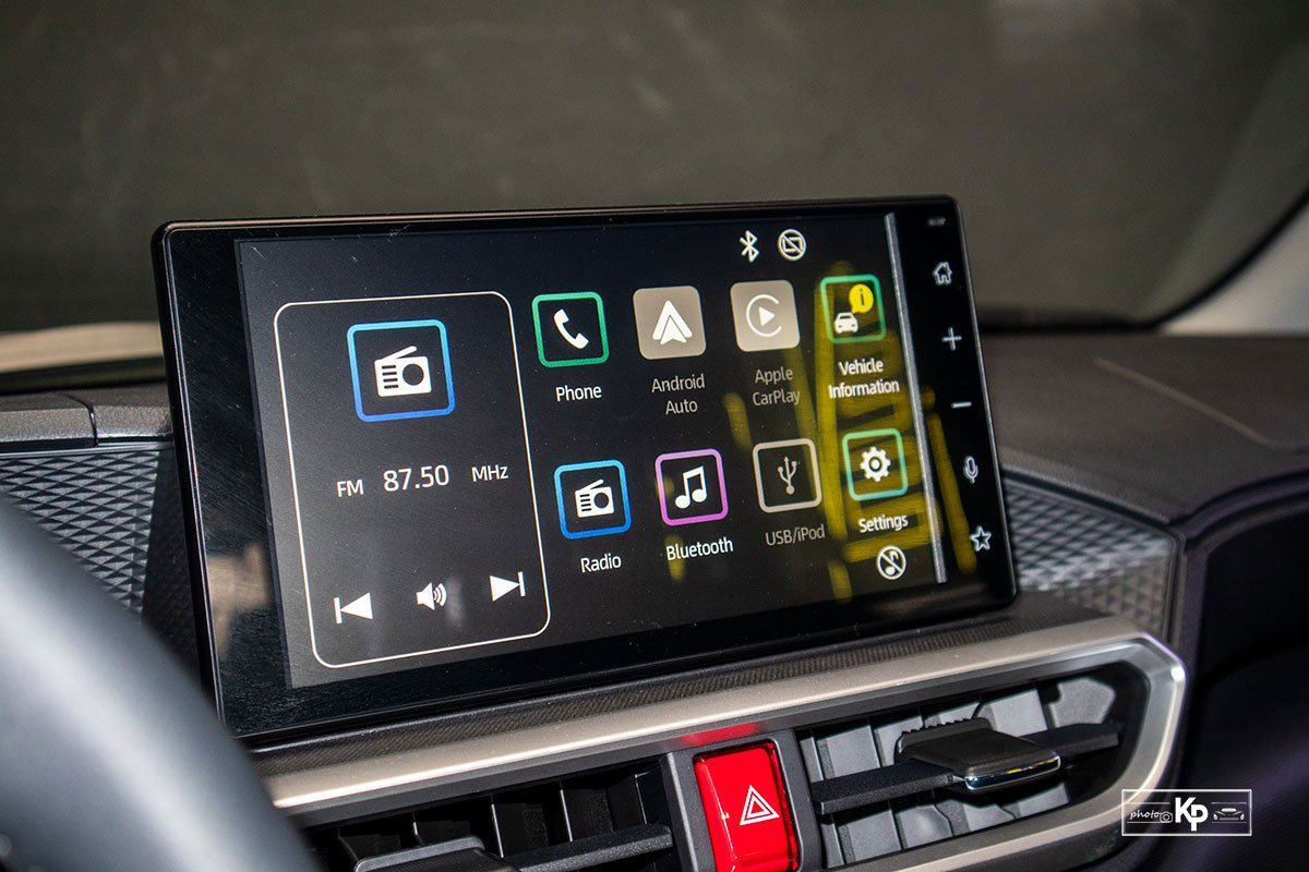 Ấn tượng tiếp theo là màn hình cảm ứng kích thước lên tới 9 inch nhô cao khỏi táp lô khá tương đồng với “đàn anh” Corolla Cross.